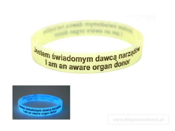 20cm Opaska, bransoletka silikonowa - Jestem świadomym dawcą narządów -rozmiar 20cm